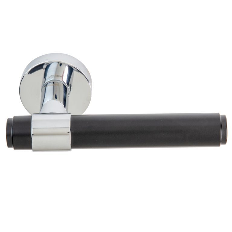 Дверная ручка на круглой розетке 333 Viva Полированный хром/черный, материал Латунь, цвет Чёрный, отделка Хром Черный, 150*52 мм